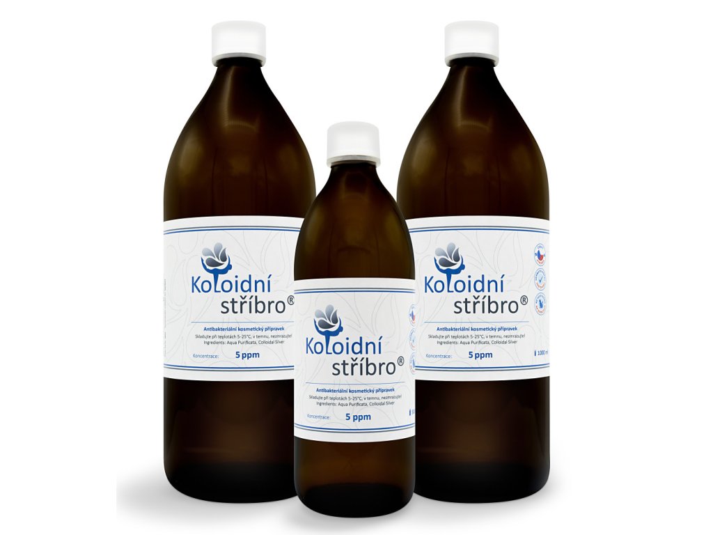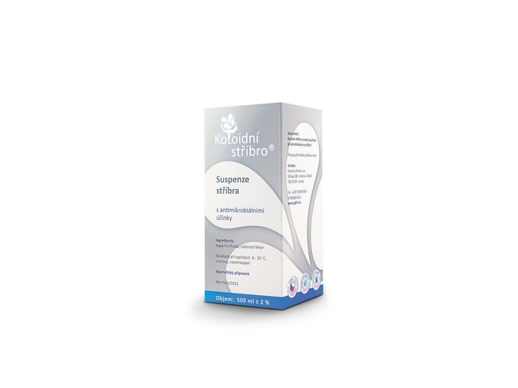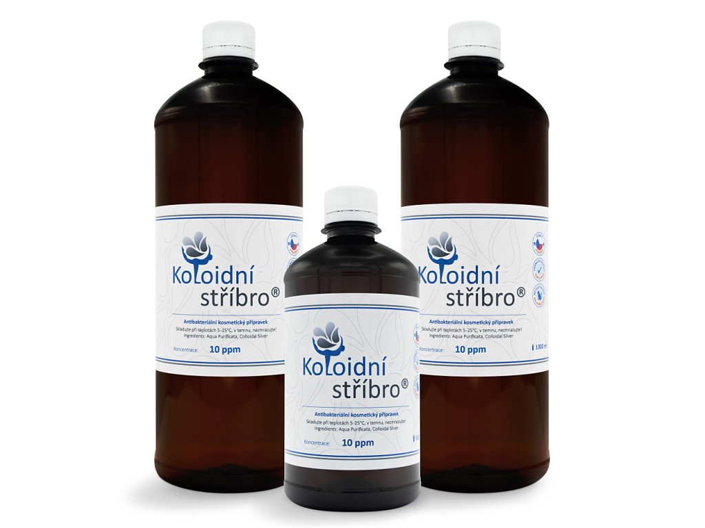 Koloidní stříbro jsou částice stříbra čistoty 99,99 %, rozptýlené v laboratorně čištěné vodě Aqua Purificata. Je vyráběno ve variantách koncentrací: 5, 10, 20, 30, 40 a 50 ppm.