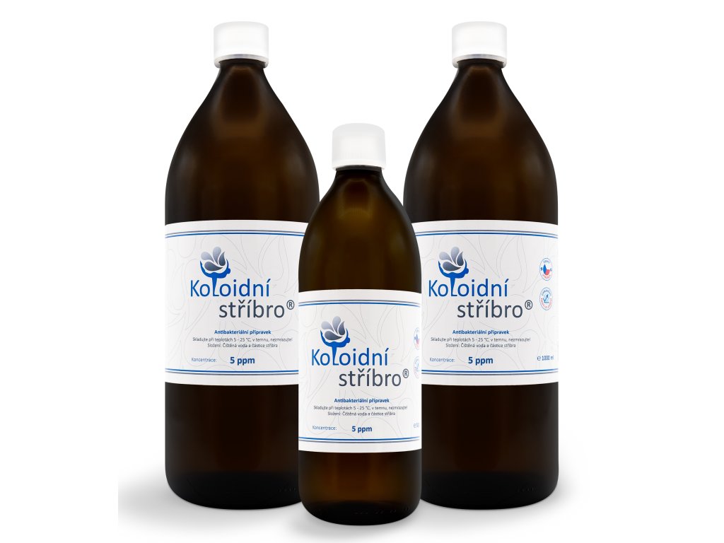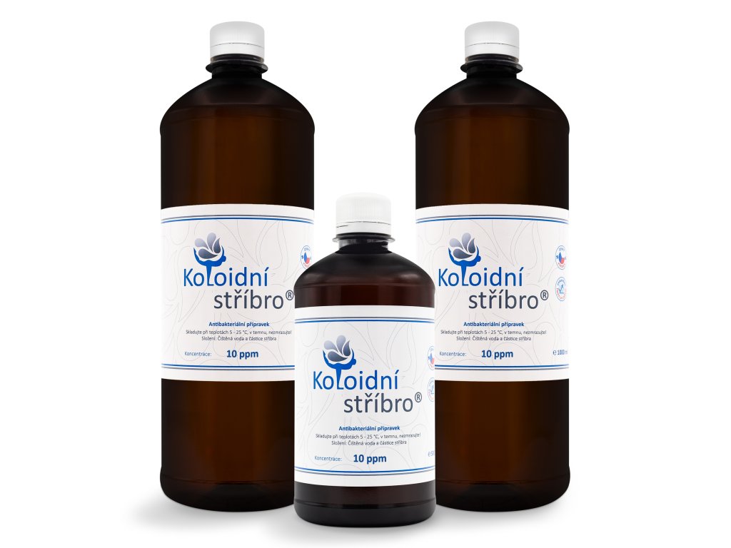 Koloidní stříbro je roztok částic stříbra (Ag) ryzosti 99,99 %, rozptýlených v laboratorně čištěné vodě Aqua Purificata (H,O).