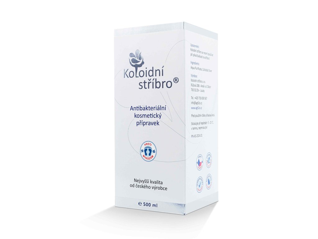 Koloidní stříbro jsou nanočástice stříbra čistoty 99,99 %, rozptýlené v laboratorně čištěné vodě Aqua Purificata. Velikost částic je v řádu nanometrů.